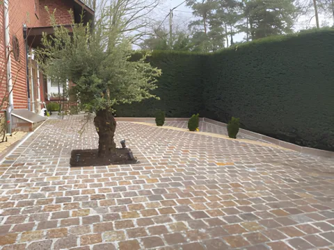 Nous utilisons des matériaux de qualité adaptés à chaque projet : pavés en béton, pavés en pierre naturelle, bois, carrelage extérieur, graviers stabilisés… Nous vous conseillons selon le style souhaité et votre budget.